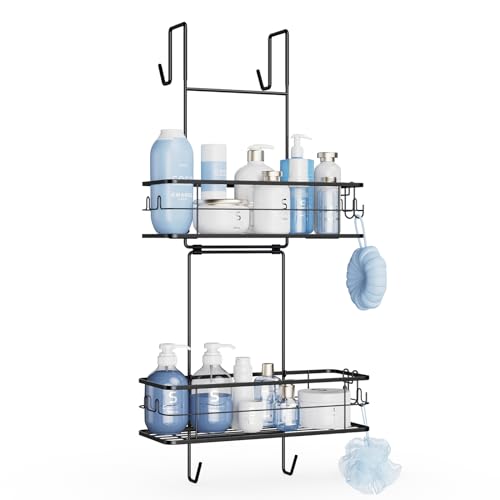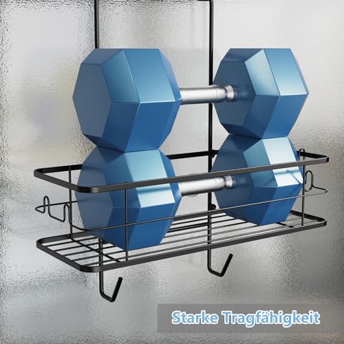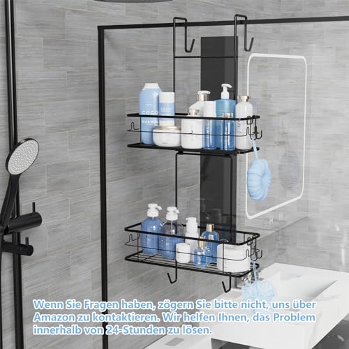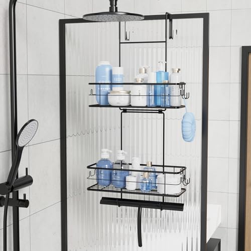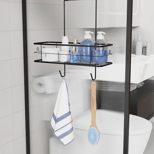 Golden Bell - رف دش من جولدن بيل لتعليق سلة الاستحمام بدون ثقب للباب الزجاجي اطار منظم الحمام والشامبو وجل مع 10 خطافات للاستحمام اسود