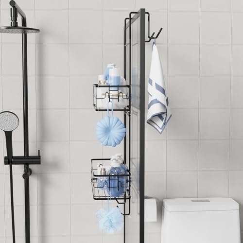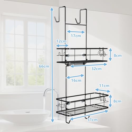 - سعة كبيرة - سلتان و8 خطافات مع خطافين إضافيين قابلين للإزالة. يمكن تعليق المناشف في الخارج (أي خارج الدش) على الخطافات. هناك مساحة كافية لتخزين أدوات الاستحمام، مناسبة لعائلة مكونة من 3-5 أشخاص.