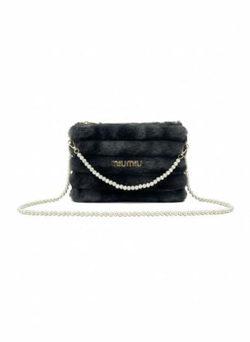 Generic - شنطة فرو ماركة بيد انيقة من الؤلؤ الابيض الكلاسيكي