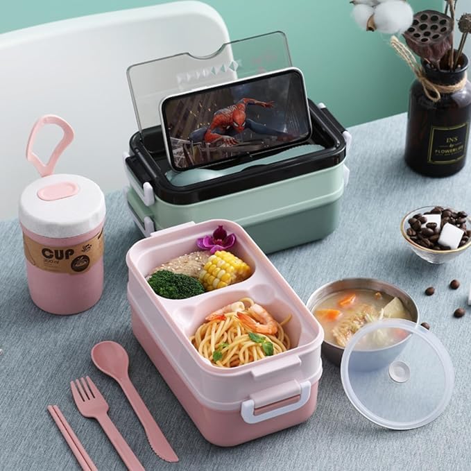 - تصميم متعدد الطبقات: تتميز بثلاث طبقات قابلة للتكديس لتخزين الوجبات بشكل منظم، ومثالية للتحكم في الحصص الغذائية والحفاظ على الأطعمة المختلفة منفصلة.