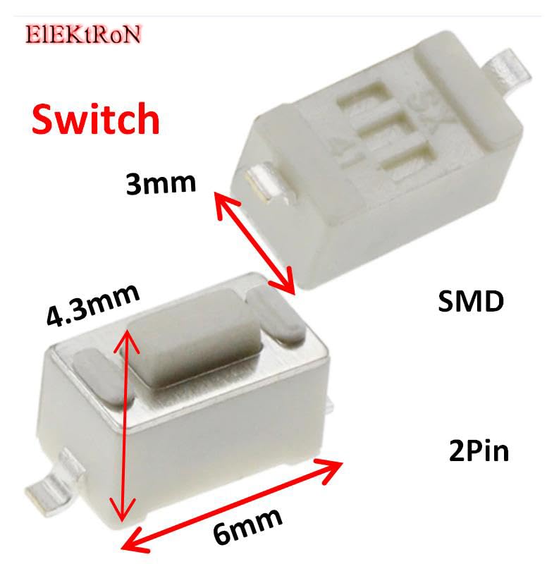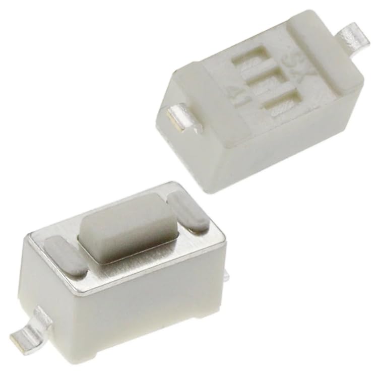 Generic - زر باور- مفتاح تشغيل، زر ضغط مايكرو متين يعمل باللمس اللحظي، مفتاح أبيض بـ2 دبوس وتيار مستمر 12 فولت 50 مللي أمبير تكتيكي (6 ملم × 3 ملم × 4.3 ملم) اس ام دي، 10 قطع