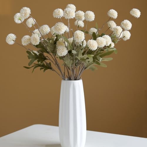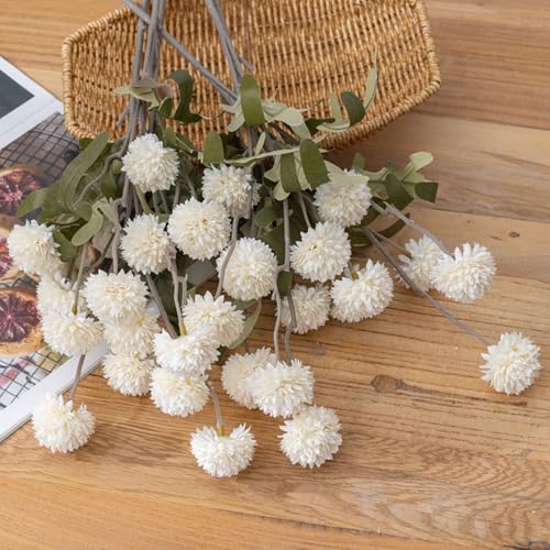 HoYuanFlo - 10 قطع من زهور الاقحوان الاصطناعية للأمهات المزيفة مع سيقان طويلة، زهور بوم بوم الصناعية الصغيرة لتزيين المنزل وحفلات الزفاف (ابيض)