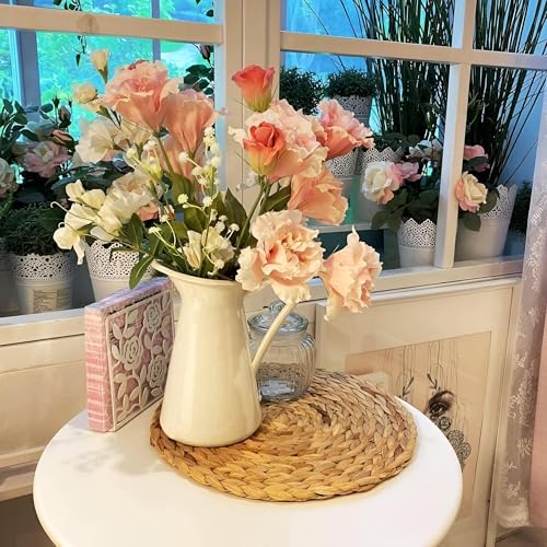 Generic - مفارش طاولة دائرية منسوجة مصنوعة من الروطان الملتوي مقاس 12 بوصة، وسائد منسوجة من الياقوت المائي الطبيعي لطاولات الطعام، مقاومة للحرارة وغير قابلة للانزلاق من أجل راحتك (8 كوستر)