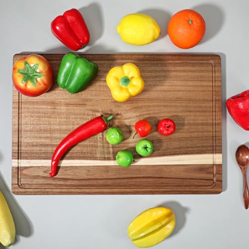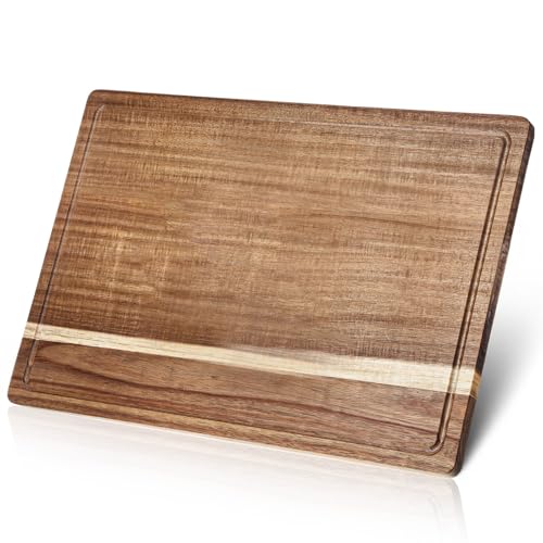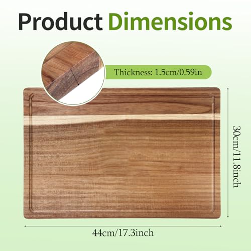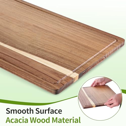 Lyksgir - 17x12 Inch Acacia Wood Cutting Boards for Kitchen, Reversible Wooden Chopping Board Large Wooden Charcuterie Board with Deep Juice Grooves & Non-Slip Handle for Meat Turkey Fruit and Cheese