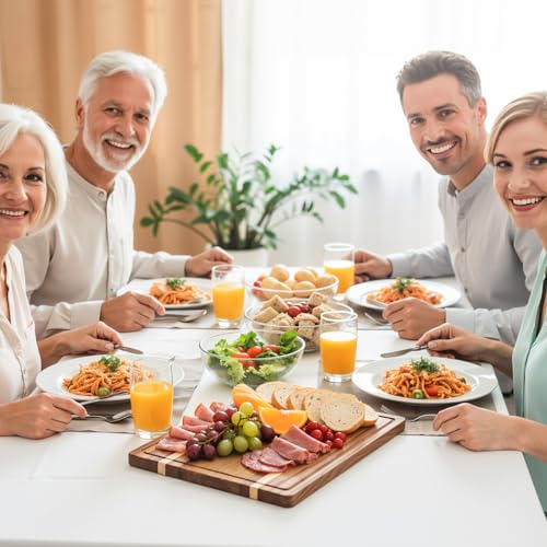 - Dual-Sided Design with Functional Features: Featuring a reversible design, one side includes a deep juice groove to effectively capture liquids and keep countertops clean, while the opposite side offers a smooth surface perfect for serving charcuterie, cheeses, and fruits. Discreet inner handles maximize cutting space for seamless food preparation.