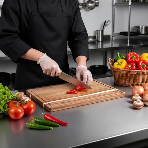 - Premium Acacia Wood Construction: Crafted from natural, food-grade acacia wood, this board combines durability with elegant aesthetics. The dense, edge-grain surface is gentle on knife edges, reducing sharpening frequency, while its sturdy build ensures long-lasting performance and resistance to warping.