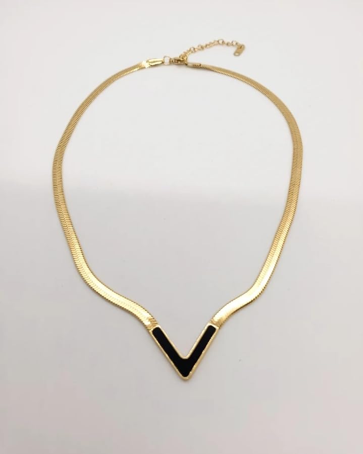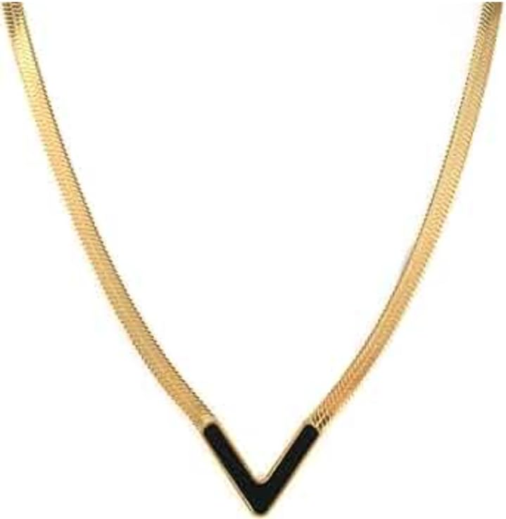 Generic - سلسلة ستانلس ستيل وانيقة مطلية بالذهب عيار 18K مع دلاية شكل حرف V سلاسل بتصميم اسم مونوجرام للنساء