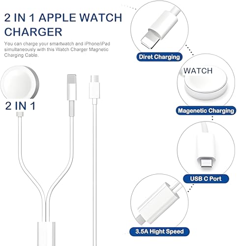 Next store - كابل شحن سريع 2 في 1 و Leghtining ,USB Type -C تصميم متين – من Next Store ومرن لنقل البيانات والشحن السريع، متوافق مع ساعة اي ووتش
