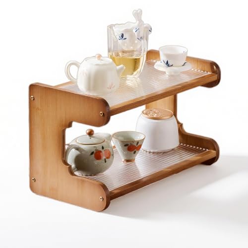 generic - محطة ماتشا من طبقتين، منظم بار القهوة، رف لسطح الطاولة لمجموعة خفاقات الماتشا، رف عرض كوب القهوة، حامل صينية تخزين الاكواب، ارفف توابل صغيرة من الخيزران