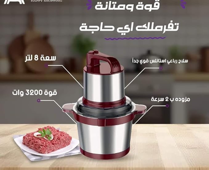 Generic - كبه لحوم كهربائية تركي 2200 واط بوعاء من الاستلس سعه 6 لتر مزوده بشفرات من الفولازالمقاوم
