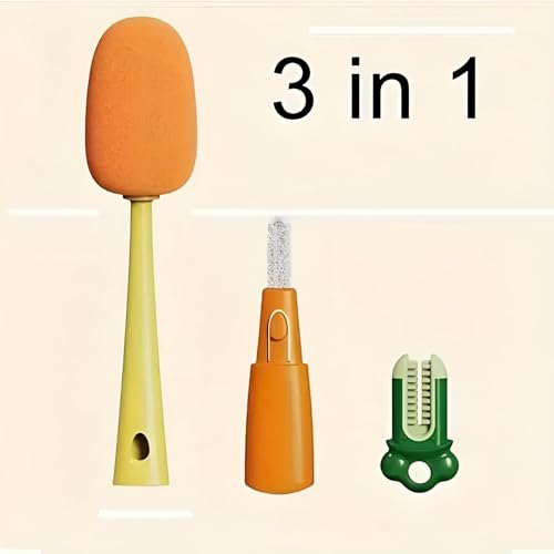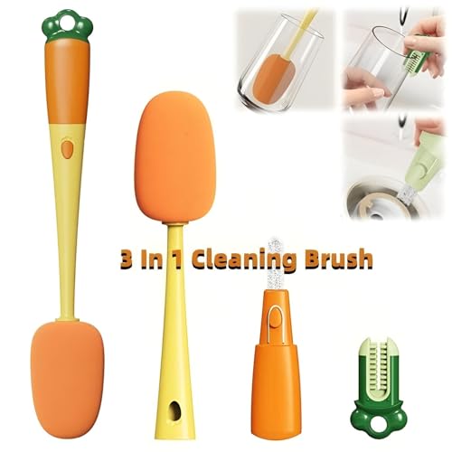 Generic - فرشاة تنظيف متعددة الاستخدامات مكونة من 3 قطع: تتميز بفرشاة تنظيف الزجاجات والزجاج المكونة من 3 أقسام، ومنظف حافة السيليكون للأكواب، وفرشاة صغيرة مثالية لتنظيف الأماكن التي يصعب الوصول إليها، كل ذلك