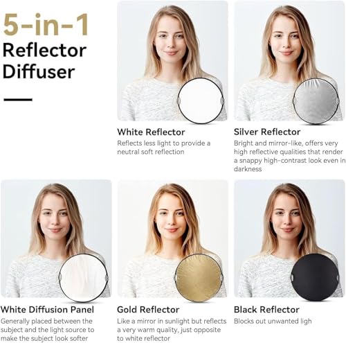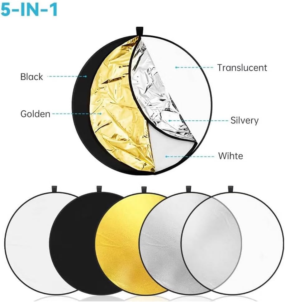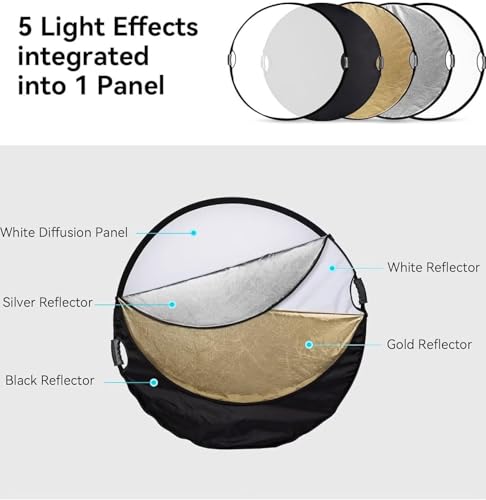 Gene Pro General - عاكس تصوير دائري 5 في 1، أسود وفضي وأبيض وذهبي وعاكس، 1.1 م