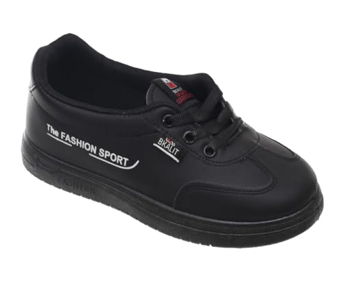 99.99 - حذاء رياضي مسطح من الجلد برباط وحروف جانبية للنساء من 99.99 - اسود (39)