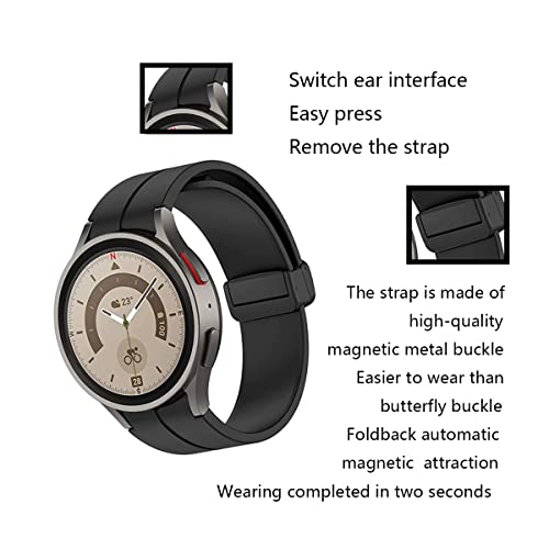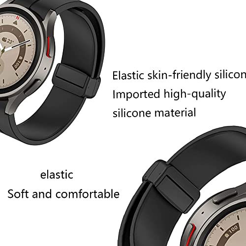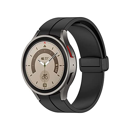 Generic - سوار ساعة رياضي من السيليكون بمشبك مغناطيسي قابل للطي لساعة سامسونج جالاكسي 5 برو مقاس 20 ملم من اليير (أسود)