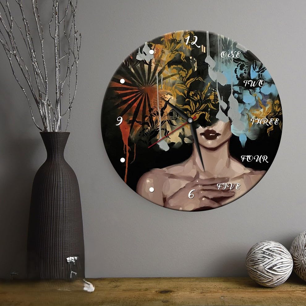- جماليات التصميم: ساعة حائط تجريدية مذهلة تتميز بأنماط زهور فنية بألوان الأسود والأزرق والذهبي، مما يخلق نقطة محورية متطورة لأي غرفة
