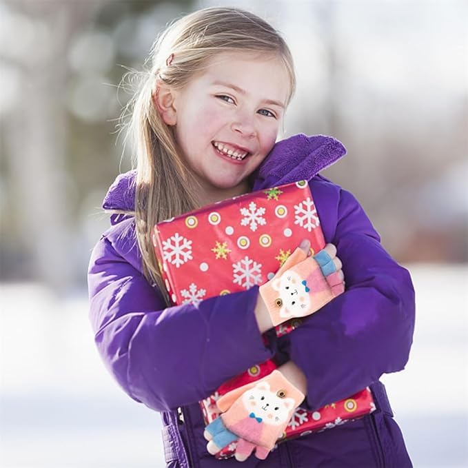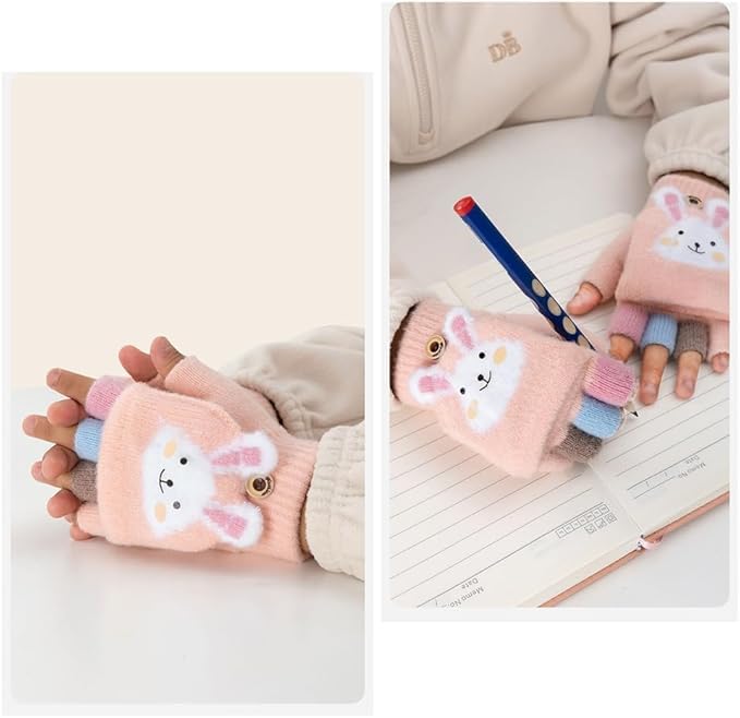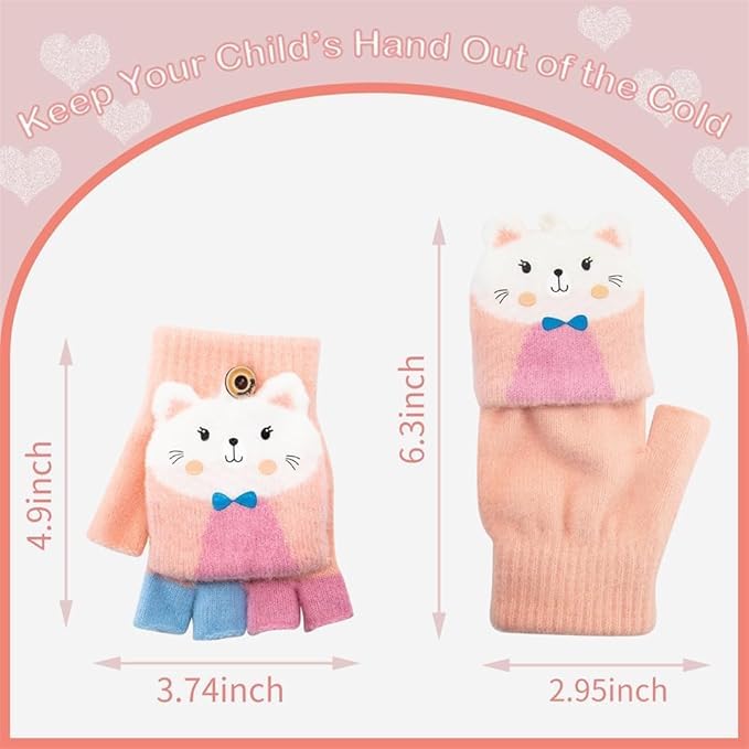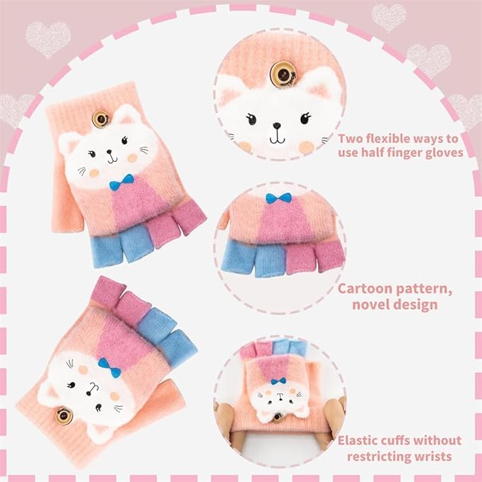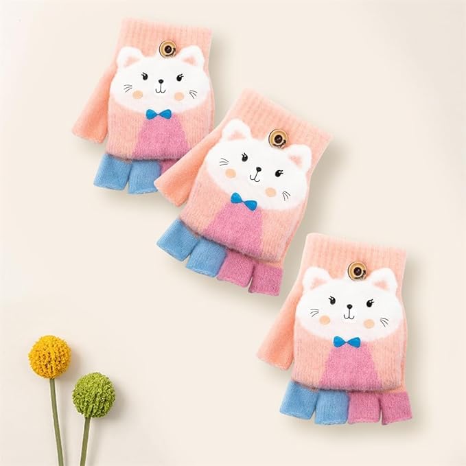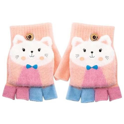ASSHMHTC - قفازات اطفال بدون اصابع من ايه اس اس اتش ام اتش تي سي، زوج واحد من قفازات شتوية دافئة قابلة للتحويل ببطانة ناعمة محبوكة ومرنة بتصميم كرتوني لطيف للاطفال الاولاد والبنات من عمر 7-10 سنوات، متعددة