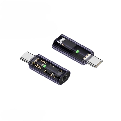 Generic - محول صوت AUX 3.5 ملم الى USB نوع C - محول نوع C لسماعات الرأس والصوت والتسجيل الصوتي (أسود شفاف)