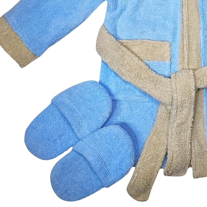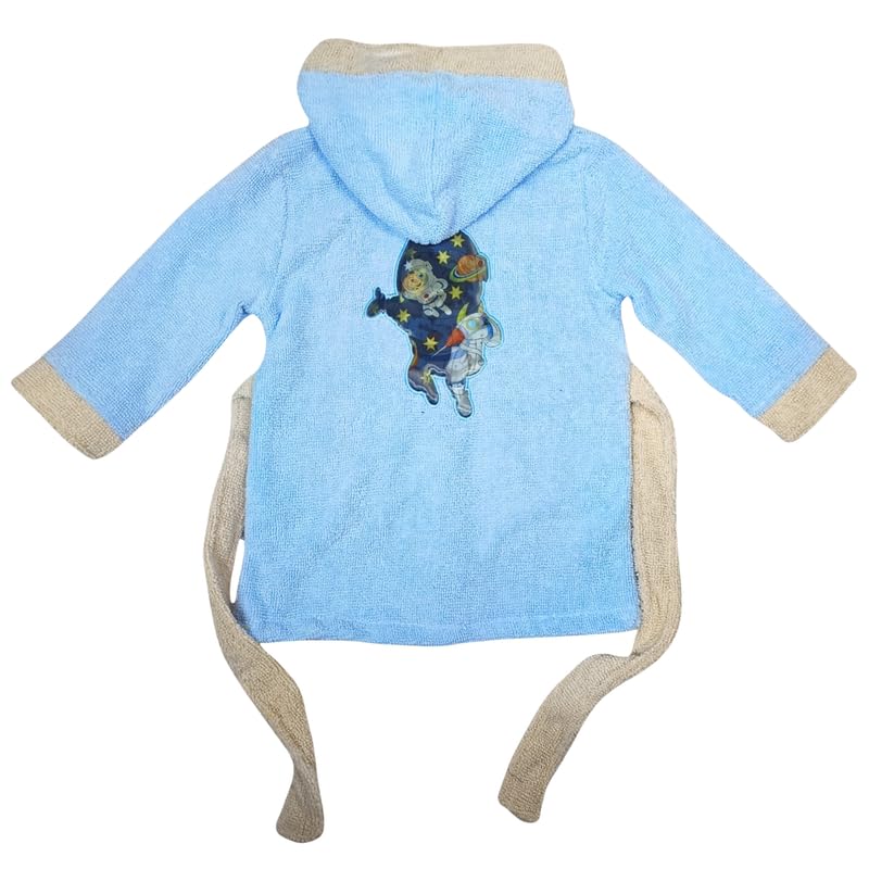 Baby Shoora - بيبي شورا روب حمام فرو بغطاء للرأس واكمام طويلة وشبشب مطبوع عليه Space Man للاولاد - ازرق فاتح وبيج- 3-4 سنوات