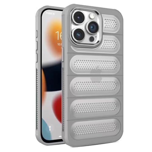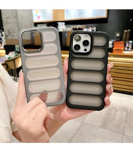 Generic - جراب خلفي شبكي مزود بمسامات للتهوية والتبريد وتصميم رفيع مضاد للصدمات مع زر عدسة معدنية متوافق مع موبايل آيفون 13 برو ماكس، أسود (رمادي)