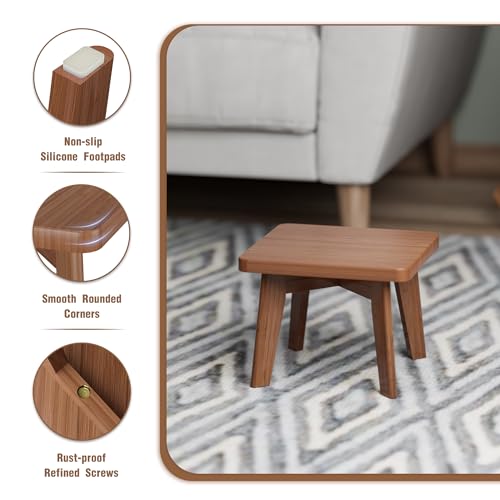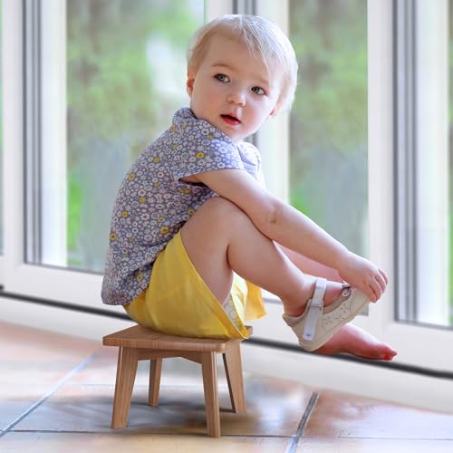 Bamsanritz - مقعد خشبي للأطفال- كرسي قدم لطيف صغير محمول من الخيزران متين مانع للانزلاق في الحوض والحمام والمطبخ وحامل للنباتات، يتحمل وزن 136 كجم من بامسانريتز، طول 18.5 سم