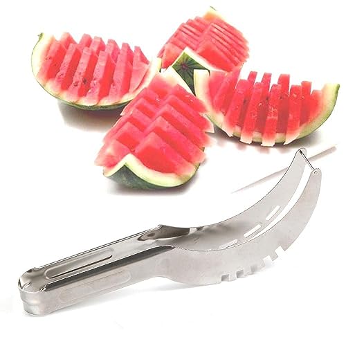 Baqsimi - أداه تقطيع وتقشير البطيخ من باكسيمي، مزودة بسكين لتقطيع البطيخ وقطاعة الفاكهة الأسرع متعددة الأغراض، مثالية للنزهات العائلية - ستانلس ستيل
