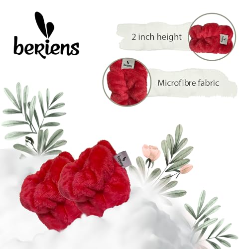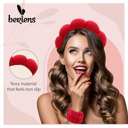 BERIENS - شريط راس للمنتجعات الصحية من بيريانز، طوق شعر لغسل الوجه، للجنسين، 100 قطعة قماش تيري، احمر