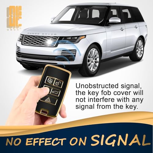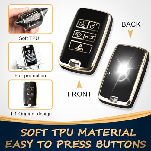 Generic - جراب مفتاح سيارة مع سلسلة مفاتيح – غطاء TPU ، متوافق مع موديلات Land Rover 2018-2026 ) Range Rover Evoque, Sport, Vogue, Discovery 5 ) وJaguar E I-PACE – ( أسود - ذهبي )