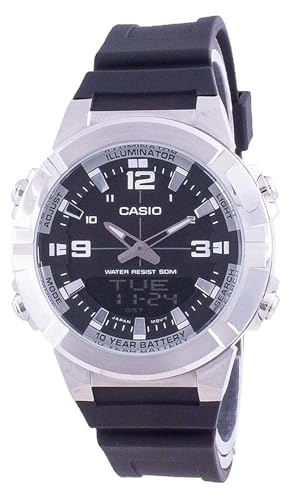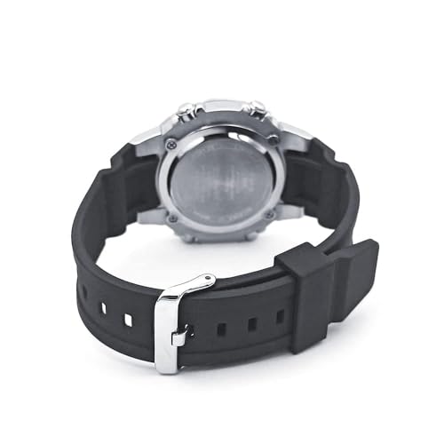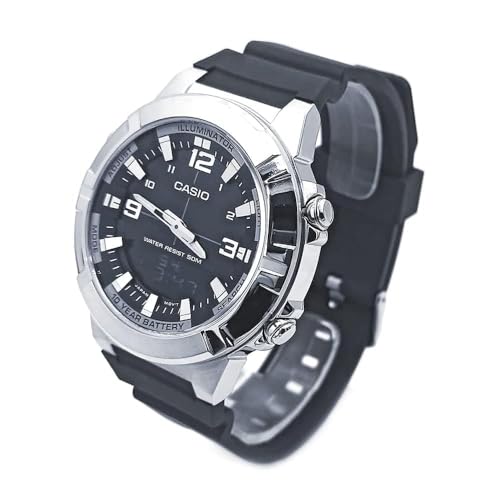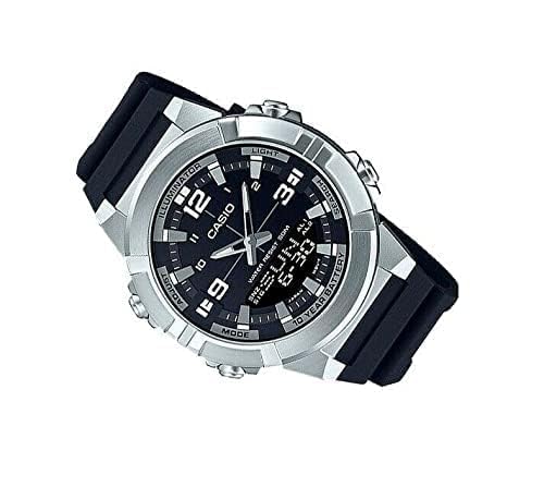Casio - ساعة أنالوج بعقارب وسوار من الراتنج للرجال من كاسيو، أسود وفضي