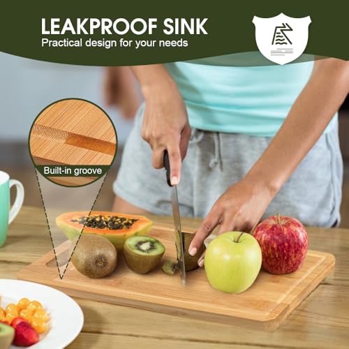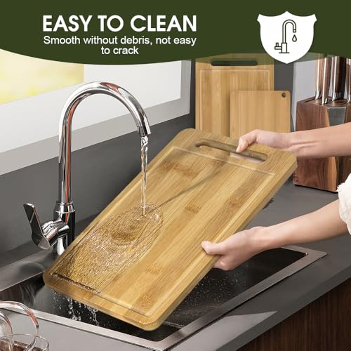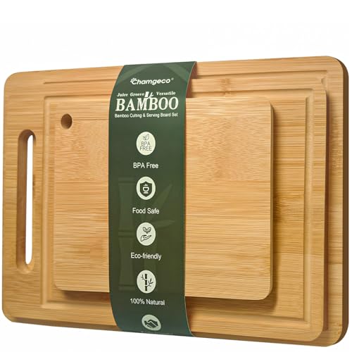 Chamgeco - الواح تقطيع من الخيزران قابلة للعكس من 3 قطع من تشامجيكو، مجموعة الواح تقطيع خشبية للحوم والخضروات والجبن، صينية تقديم مع اخاديد عصير ومقابض مثالية لتحضير الوجبات، تشاركوتيري