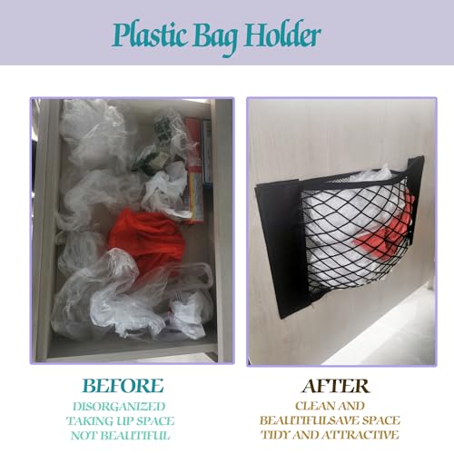 - سعة تخزين متعددة الاستخدامات: يتميز حامل الأكياس الشبكي الكبير بأنه ينظم ويوزع الأكياس البلاستيكية وأكياس القمامة والأغلفة البلاستيكية وأكياس التسوق.