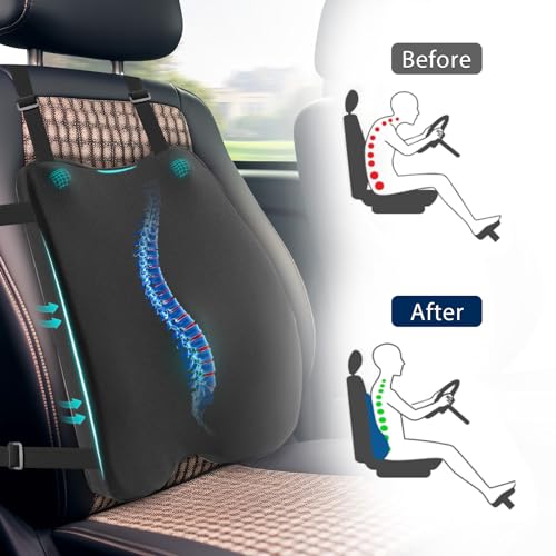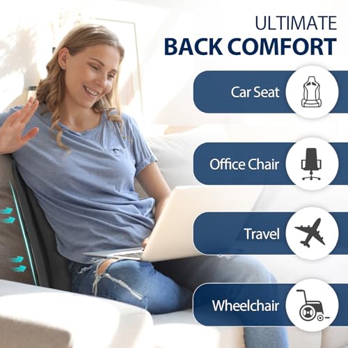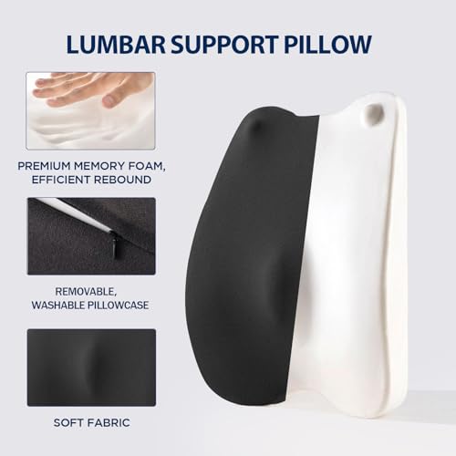 - 【تصميم مريح】تضمن مخدة دعم أسفل الظهر التي نالت ثناء الخبراء راحة متفوقة بفضل تقنية تتفاعل مع حرارة الجسم؛ حيث تتشكل مادة فوم ميموري لتناسب انحناءة العمود الفقري، مما يوفر دعمًا شخصيًا وفعالًا لتخفيف آلام الظهر وعرق النسا.