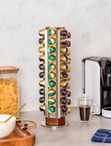- سعة كبيرة: مع سعة استيعاب ما يصل إلى 60 كبسولة نسبريسو، يوفر هذا الحامل مساحة تخزين واسعة لمزيج القهوة المفضل لديك، مما يضمن عدم نفاد خياراتك أبدًا.