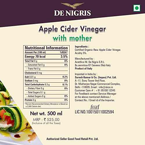 de nigris - خل تفاح اورجانيك خام من دى نيجريس، 500 مل