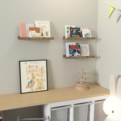 DOLLFIO - مجموعة ارفف عائمة من دولفيو مكونة 3 قطع حائط بنمط ريفي مع شفاه عرض لتزيين الحائط حافة صور ريفية لغرفة المعيشة وغرفة النوم والحضانة والحمام والصور والكتب والنباتات - بني خشب مُصنع