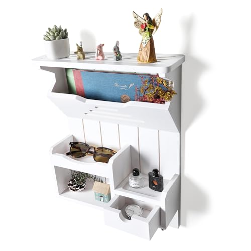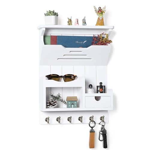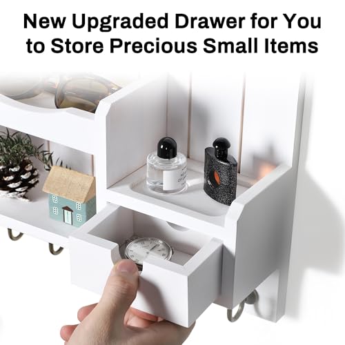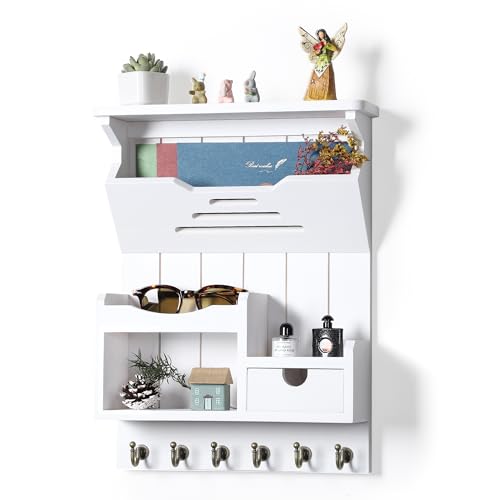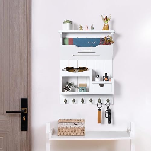 D DOPACE - حامل مفاتيح للجدار والبريد والمفاتيح، منظم البريد يثبت على الحائط مع درج تخزين و6 خطافات، حامل مفاتيح سهل التركيب للمدخل وديكور المنزل، ابيض