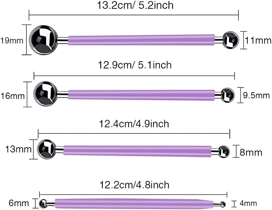 - أداة تنقيط وتزيين الكيك والحلويات تنقيط بالالوان الاكريليك والاظافر صلصال، 4 قطع، 8 أحجام