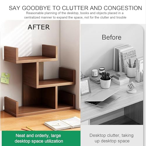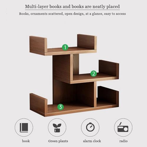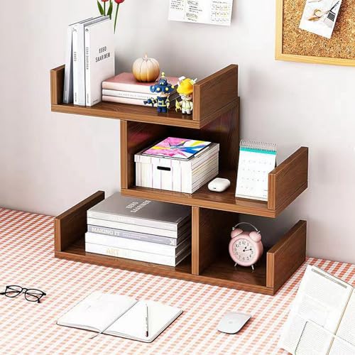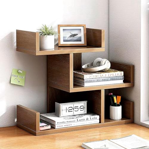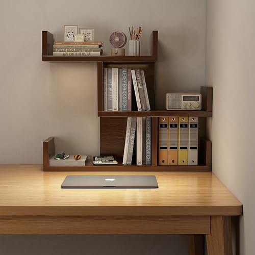 Dreamhousey - دولاب كتب صغير متعدد الطبقات لسطح المكتب، رف مكتبي، دولاب كتب خشبي صلب عصري وبسيط للطلاب، رف تخزين كبير (بني) من دريم هاوس 001dsgsdg
