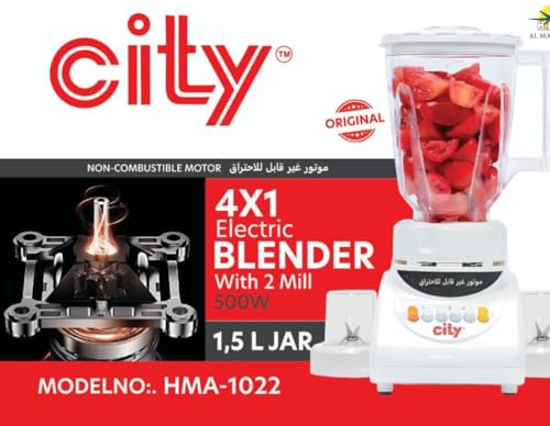 Generic - خلاط كهربائي من للطعام وعمل العصائر و بيكسر الثلج بقدرة 500 وات دورق 1.5 لتر مزود ب 6 شفرات استانيلس حادة سرعات متعددة بكوب معيار ومرفق مع الخلاط كارت ضمان لمدة عامHMA -1022 واط ابيض