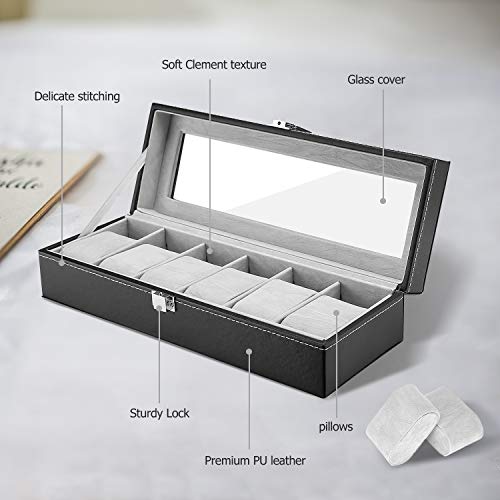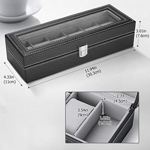Generic - علبة عرض أنيقة للساعات والمجوهرات مع غطاء زجاجي شفاف، تتميز بستة فتحات مبطنة لتنظيم وحماية ساعات الرجال وأساورهم
