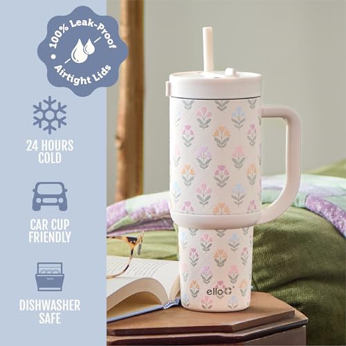 Ello - ايلو زجاجة مياه من الستانلس ستيل سعة 30 اونصة من اويسيز - لحاف بتصميم زهور