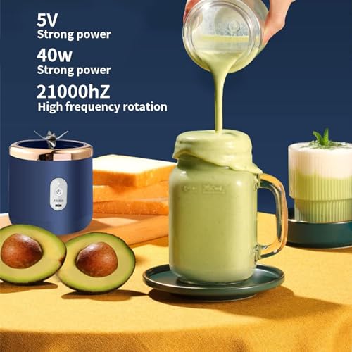 FEIXIONG - خلاط عصير محمول، كوب عصارة صغير، خلاط فواكه، كوب عصير محمول للعصائر والسموذي والمخفوقات والفواكه والثلج سعة 350 مل، محمول باليد للسفر والمنزل (ازرق)، 40.0 واط