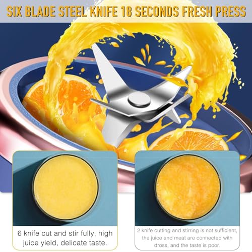 - 【مزج مطور بـ 6 شفرات】- خلاط محمول مسنن من الستانلس ستيل 304 ذو 6 شفرات أقوى من الشفرات الأربعة الصغيرة التقليدية، تعمل الشفرات الفولاذية بسرعة عالية تصل إلى 21000 دورة في الدقيقة. يمكن لهذه العصارة مزج الفواكه ومكعبات الثلج بسرعة في دقيقة واحدة فقط.