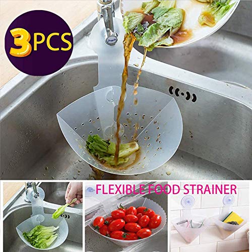 SISSFO - مصفاة حوض قابلة للطي، مصفاة لجمع الطعام في الحوض، سدادة حوض المطبخ، بتصميم بسيط من البلاستيك، مصفاة تصريف ذاتية الوقوف، مصفاة مطبخ لمنع الانسداد، للمنزل - 3 قطع