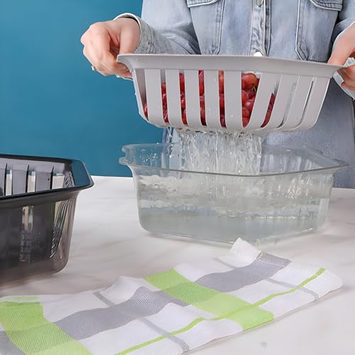 Generic - مصفاة طعام - مصفاة اكريليك مزدوجة الانقسام مع غطاء انيق لتصفية وتنظيم الخضروات والفواكه بسرعة في المطبخ