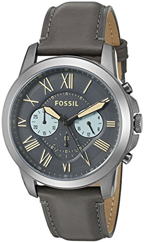 Fossil - ساعة جرانت للرجال بشاشة انالوج وسوار جلد من فوسيل، كوارتز، Fs5183، بمينا رمادي