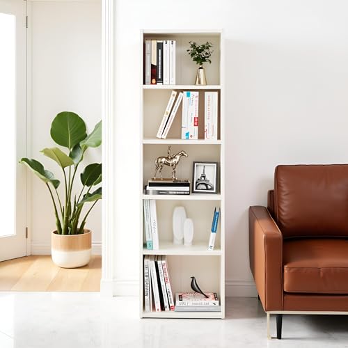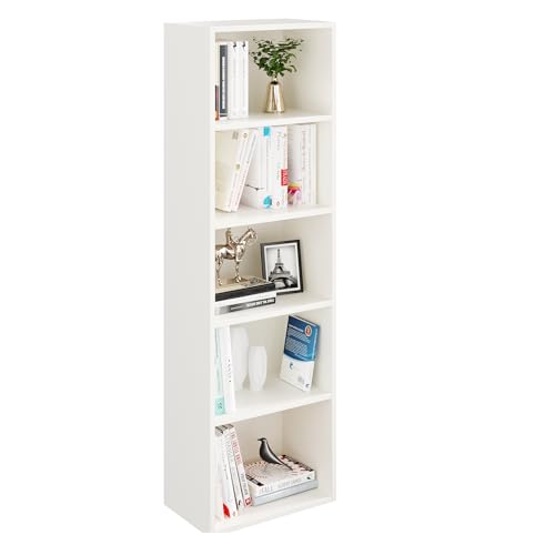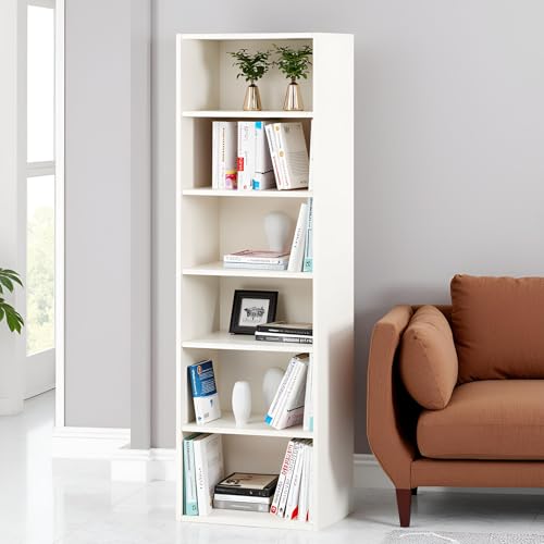 FURNEASER - رف كتب مصنوع من خشب ايفا بتصميم هندسي متعدد الاغراض لديكور المنزل وغرفة المعيشة والمطبخ النوم والمكتب الدراسة فورنيزر أبيض