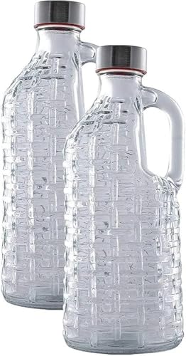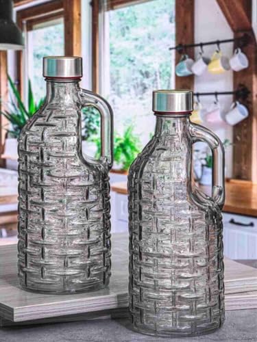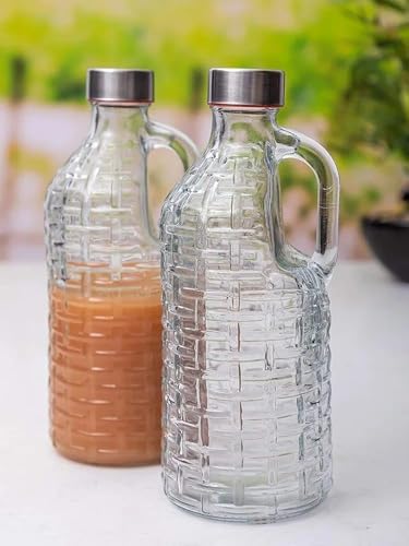 Generic - عبوتان من زجاج شفاف مع يد وغطاء محكم على شكل زجاجة حليب، مناسبة للمياه والعصير للثلاجة وحفظ السوائل في المطبخ، شفافة