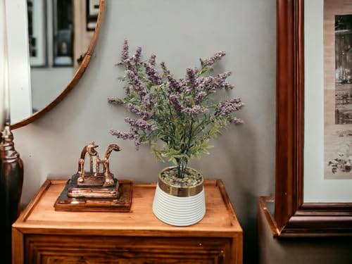 Generic - نبات لافندر صناعي في أصيص سيراميك أبيض بحافة ذهبية، ديكور منزلي عصري (أبيض)