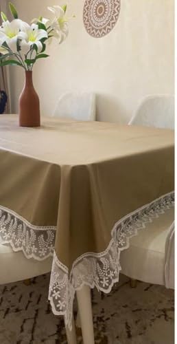 Generic - جيني مفرش طاولة من الجلد بحواف من الدانتيل، (كافيه)، 150 × 210 سم، غطاء طاولة طعام. فلو
