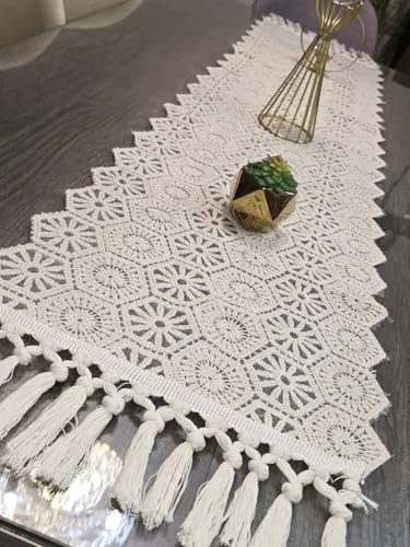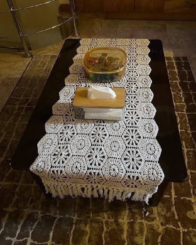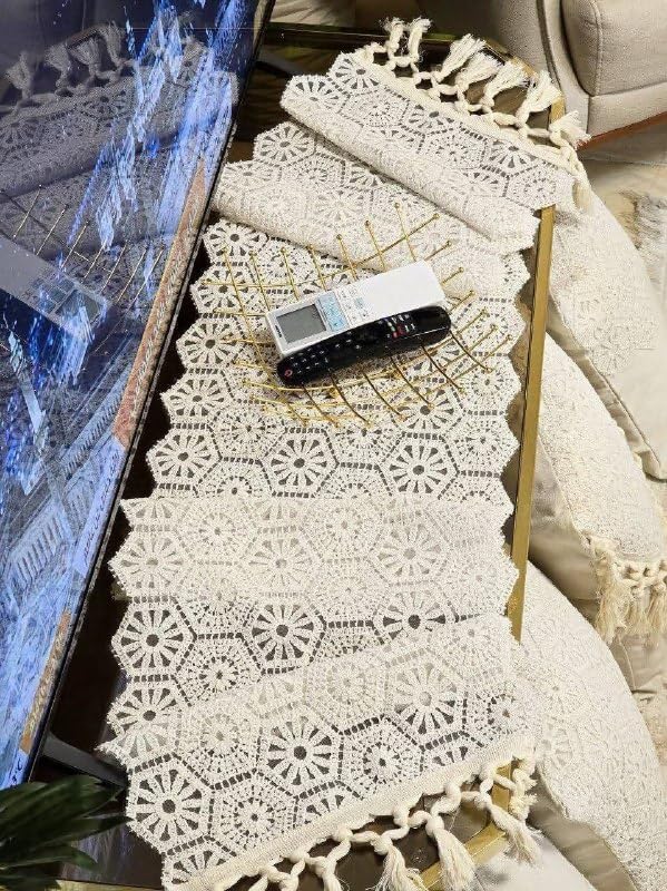 Generic - جيني مفرش طاولة مكرمية، دانتيل كروشيه بيج مع شراشيب، ديكور منزلي مصنوع يدويا